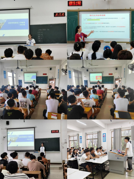 为帮助新生坚定理想信念,尽快适应大学生活。9月底,信息学院面向2024级13个班级开展了入学教育。学院选拔优秀学生党员、团学会优秀学生干部代表围绕学风建设、奖助贷制度、宿舍管理规定、党团教育、综合素质测评、学生违纪处分制度篇等七个方面为新同学做了详细的解读。
