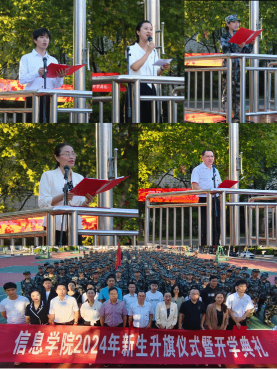 秋风送爽,丹桂飘香,2024年9月23日早上7点,信息学院在宇光球场隆重举行了2024级新生的升旗仪式及开学典礼,全体院领导、行政办主任、教务办主任、辅导员及新生班主任参加了本次活动,活动由党总支副书记朱舒腊主持。