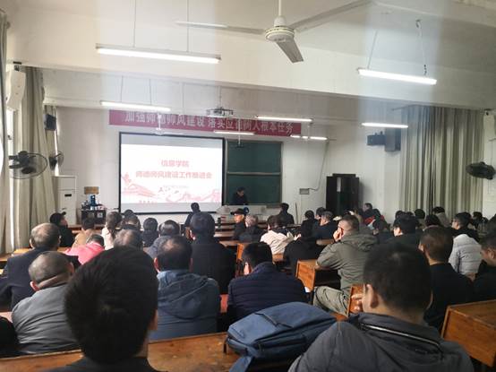 2021年10月9日下午,信息学院召开师德师风建设工作推进会议,会议的主题是“加强师德师风建设 落实立德树人根本任务”。党总支书记谭甲凡主持会议,党总支副书记刘宗良作学院师德师风建设工作报告,学院全体教职工参加。