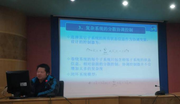 侯博士首先介绍了多电机卷绕系统的主要用途、接着分析了卷绕系统控制中面临的挑战和需要攻克的技术难点,从国家战略高度说明了开展多电机卷绕系统控制研究的必要性,最后介绍了自己从事该系统控制研究的主要研究成果,并结合自己从事科研的亲身经历说明了怎么从实际中提炼科学问题,怎么从生活常识挖掘出解决问题的方法。整个报告会理论与生活实际结合、知识性与启发性并存,使师生们深受启迪,对如何进行科学研究有了更深的理解和认识。