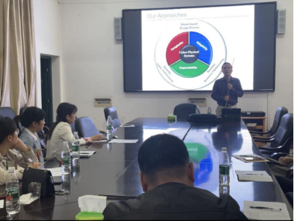 曾海波教授以“Towards Dependable and Adaptive Cyber-Physical Systems”为主题,详细阐述了什么是“Cyber-Physical System”(信息物理系统,以下简称CPS),并介绍了该领域目前的研究方向和应用趋势。曾教授结合实际应用案例,如飞行汽车、自动驾驶、无人机和仓库机器人等,分析了CPS自适应性、复杂性和可靠性的特性。为了实现CPS能自适应及时响应各种不可预测的情况,又能可靠地可预测地正确运行,曾教授分享了两个技术方案:一是运行时资源管理,根据系统运行环境来动态调整调度和软件配置参数,并同时保证系统的实时可靠性;二是运行时安全机制,从安全规约自动综合生成反应式部件来保护系统免受各种错误的影响。最后,曾教授和老师们就相关问题进行了交流讨论。