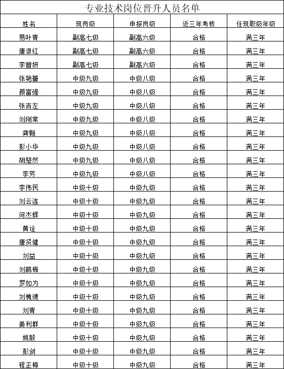| 专业技术岗位晋升人员名单 |