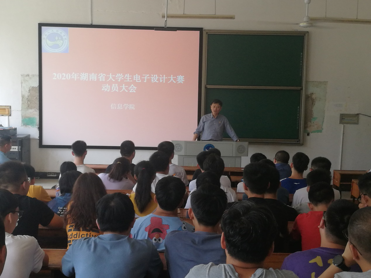 2020年湖南省大学生电子设计竞赛(TI杯)开赛在即,为了充分调动参赛学生的积极性、做好竞赛前最后一个月的冲刺准备工作,我院于2020年9月8日组织召开2020年湖南省大学生电子设计大赛动员大会。学院党总支书记谭甲凡,副院长朱高峰,指导老师谭周文博士,彭小华老师、蔡伟华老师以及电子创新实验室近50多名学生参加了此次动员大会。