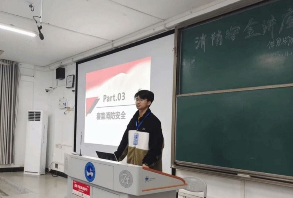11月9日至18日面向全体23级同学举办的6场消防知识讲座由信息学院辅导员王觉主持,信息学院文建部消防宣传志愿者主讲。讲座从火灾的成因,日常生活中火灾的预防,初期火灾扑救,火灾现场如何逃生,消防器材的使用,实验室消防安全知识等方面向大家进行了针对性讲解。提高了大家的消防安全意识和应对火灾事故的能力。讲座中志愿者同学带领大家熟悉一次消防器材,还进行了安全知识考核,确保大家的学习卓有成效。最后信息学院辅导员带领全体文建干部,号召大家走一次疏散通道,开展一次寝室消防隐患排查工作。