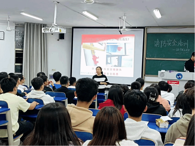 信息学院消防安全宣传月,于11月9日在信息学院秋冬第一场消防安全知识讲座中拉开帷幕。为了提升全体信院同学的安全素养,信息学院紧扣主题,锁定重点开展消防安全“四个一”活动。全面推进消防宣传工作见质见效,进一步提升全体同学安全素养,增强消防安全防控能力,促进平安校园建设、和谐校园的发展。