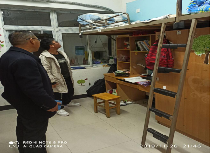 会议在学工办主任颜聪玲老师的主持下有序进行。首先由其概括此次会议的内容:学风建设要求、审核评估动员和收缴学杂费。其中着重讲到上课期间对学生们的具体要求,如严禁在上课期间玩手机、睡觉等。刘宗良副书记则对学风建设做出了更加精细的要求,并对学生安全问题做出预警,严防电信诈骗和安全合法驾驶的发生。会议结束后,全体参议人员前往学生寝室进行检查,以充分了解学生的生活状况及卫生情况。