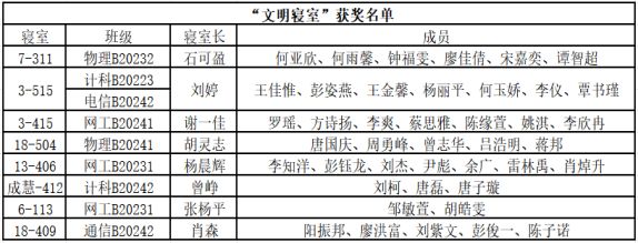 本次评选通过寝室文化视频展示、寝室日常扣分情况、公众号投票三方面进行考量,评选活动不仅对寝室环境和同学们日常行为进行检验,同时也对寝室文化的良性发展以及寝室和谐关系起到推动作用。最终,学院评选出一批具有示范作用的“文明寝室”,为全院学生树立了榜样。