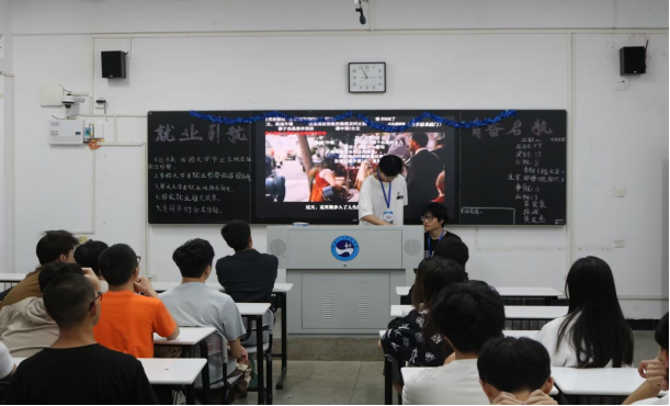 首先,主持人带领大家观看了鼓舞人心的教育视频《写给未来的自己》,以帮助同学们树立健康的就业意识;接着,同学们阅读了《就业政策》文件,进一步了解当前我国的就业政策;观看了《职业规划》视频,深入探讨了职业规划的相关内容;学习了《大学生就业前景分析》,对当前的就业前景有了更深入的了解;最后,主持人随机挑选同学分享如何进行创业,达到共同成长、探讨在实际生活中如何应对挑战的目的。整个活动氛围轻松愉悦,参与度高,让同学们从中受益匪浅。
