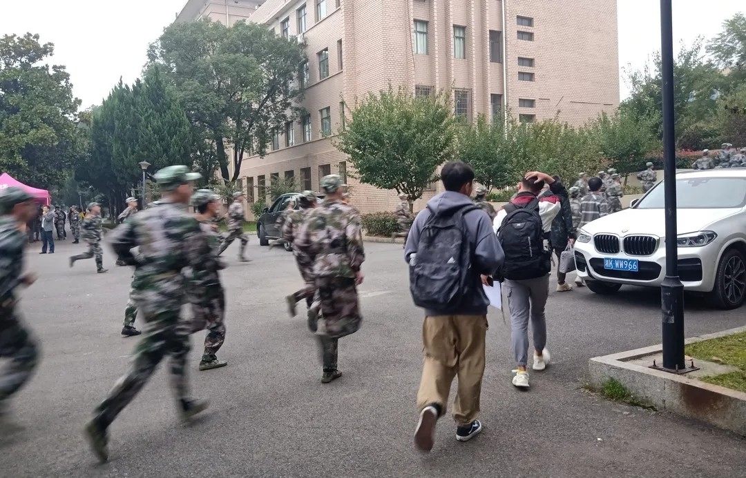 (班助们与新生一同前往军训场地) |