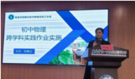 工作室首席名师徐晚云的专题讲座《初中物理跨学科实践作业实施》,从设计背景、设计实施、作业评价三个方面对跨学科实践作业的意义和方法做了详细地解说。徐老师通过典型案例,让大家对新课标跨学科实践作业有了更加深入的认识,对如何设计跨学科作业有了更清晰的思路。