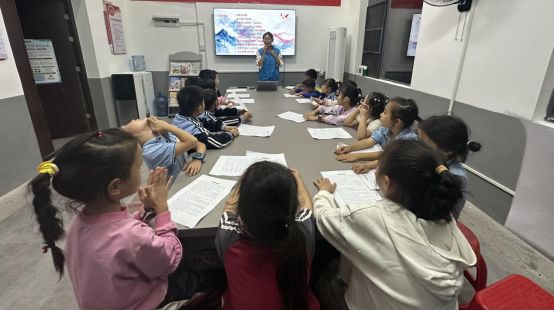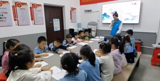 “小朋友们,我们的新中国是什么时候成立的呀?”在《厉害了,我的国》朗诵课堂中,志愿者们以一个问题调动了孩子们的兴趣,并以口部操发声训练、气息训练为基础,亲身示范讲解发音和朗诵技巧个课堂,志愿者们精心准备、孩子们积极参与,双方互动频繁,小朋友们轻松、欢乐的氛围逐渐了解朗诵、学习朗诵、爱上朗诵。在课堂结束后,许多小朋友们与团队志愿者挥手告别,大家纷纷期待着第二天的“四点半课堂”。