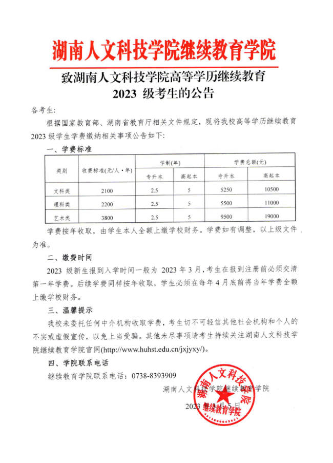 根据国家教育部、湖南省教育厅相关文件规定,现将beat365高等学历继续教育2023级学生学费缴纳相关事项公告如下: