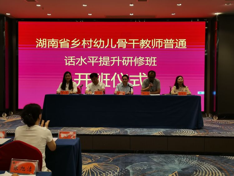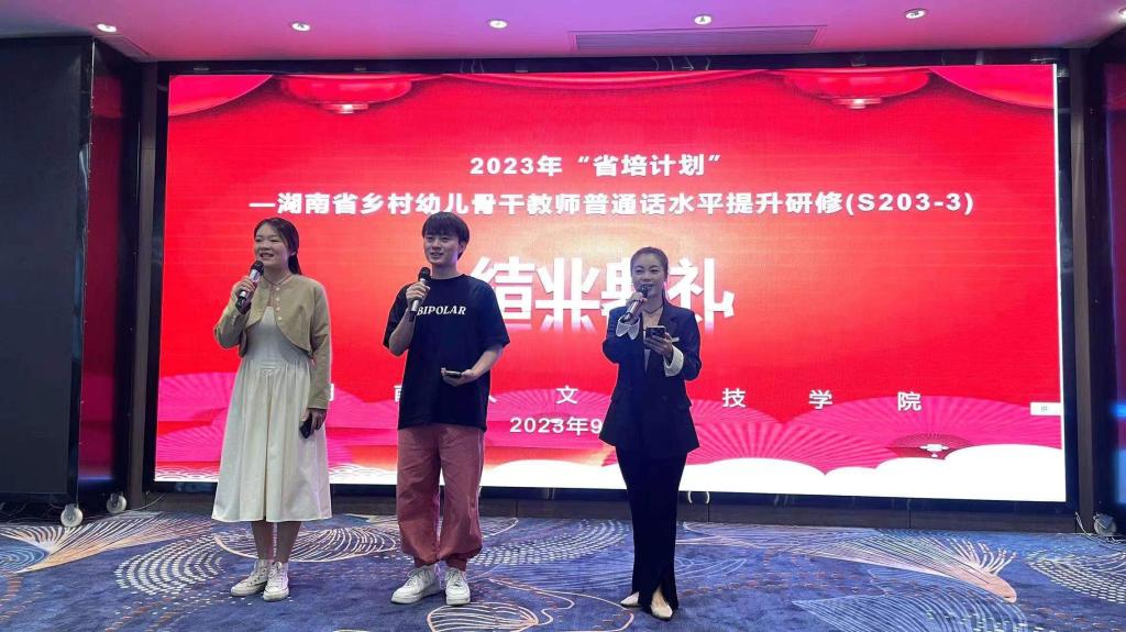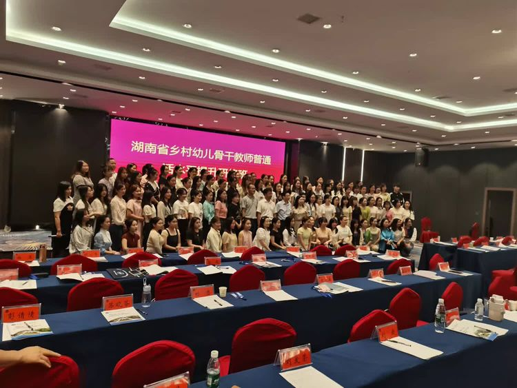 beat365英国官网科技学院承办2023年“省培计划”-乡村幼儿骨干教师普通话水平提升研修项目,于2023年9月20日在娄底市金和酒店如期启动,于9月24日圆满结束。参与研修的100名学员来自湖南省个地州市,beat365副校长陈志国、教育学院书记邹坤、继续教育学院院长郑秀星、副院长钟勇、首席专家赵艳红参与开班仪式,开班仪式现场介绍了项目的研修目标、研修内容、研修专家团队、研修要求和任务等方面的内容。学员代表也发言表示珍惜这次机会,让这次培训成为“快乐学习”的研修活动。