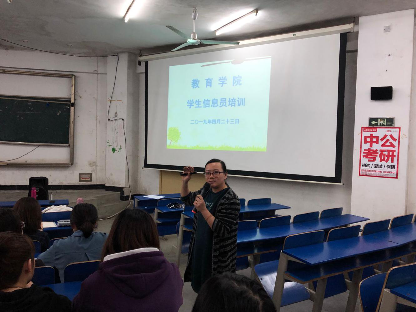 为了进一步落实学校工作部署,普及心理健康知识,及时关注学生心理问题,做好心理危机干预工作。2019年4月23日星期二晚上19:30,由教育学院学工办主导的“心理信息联络员培训会议”在致远楼119举行。主持本次会议的为教育学院副书记李霞,参与本次会议的有教育学院辅导员谢琼、辅导员李佳维,以及各级心理委员或班级负责人。