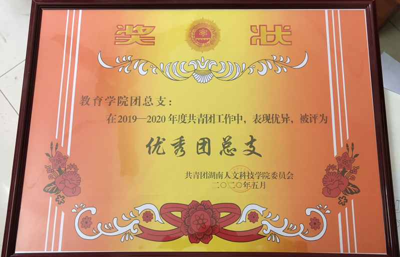 在全体团员青年一年的努力下,我院团总支于2020年5月4日被评为学校2019-2020学年“优秀团总支”。