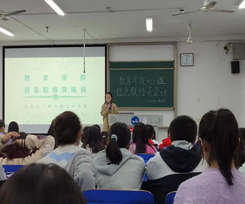 2021年10月29日中午,教育学院心理信息联络员培训会议于致远楼312拉开帷幕。教育学院党总支副书记田密、辅导员黎任水、院团总支学生会心理部、21级各班寝室长以及18-21级班长和心委参加了本次会议。