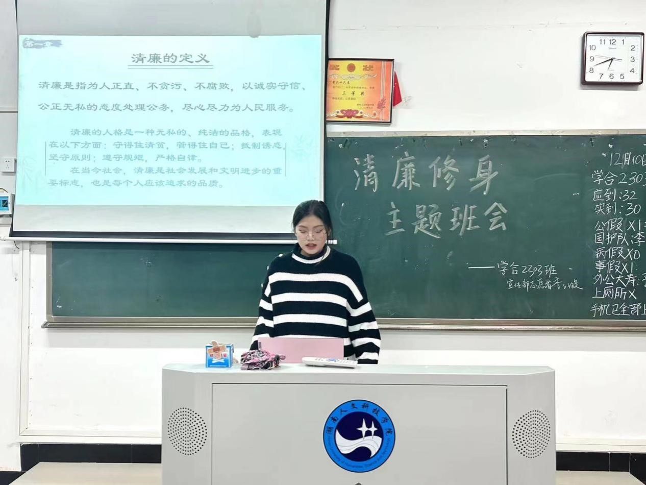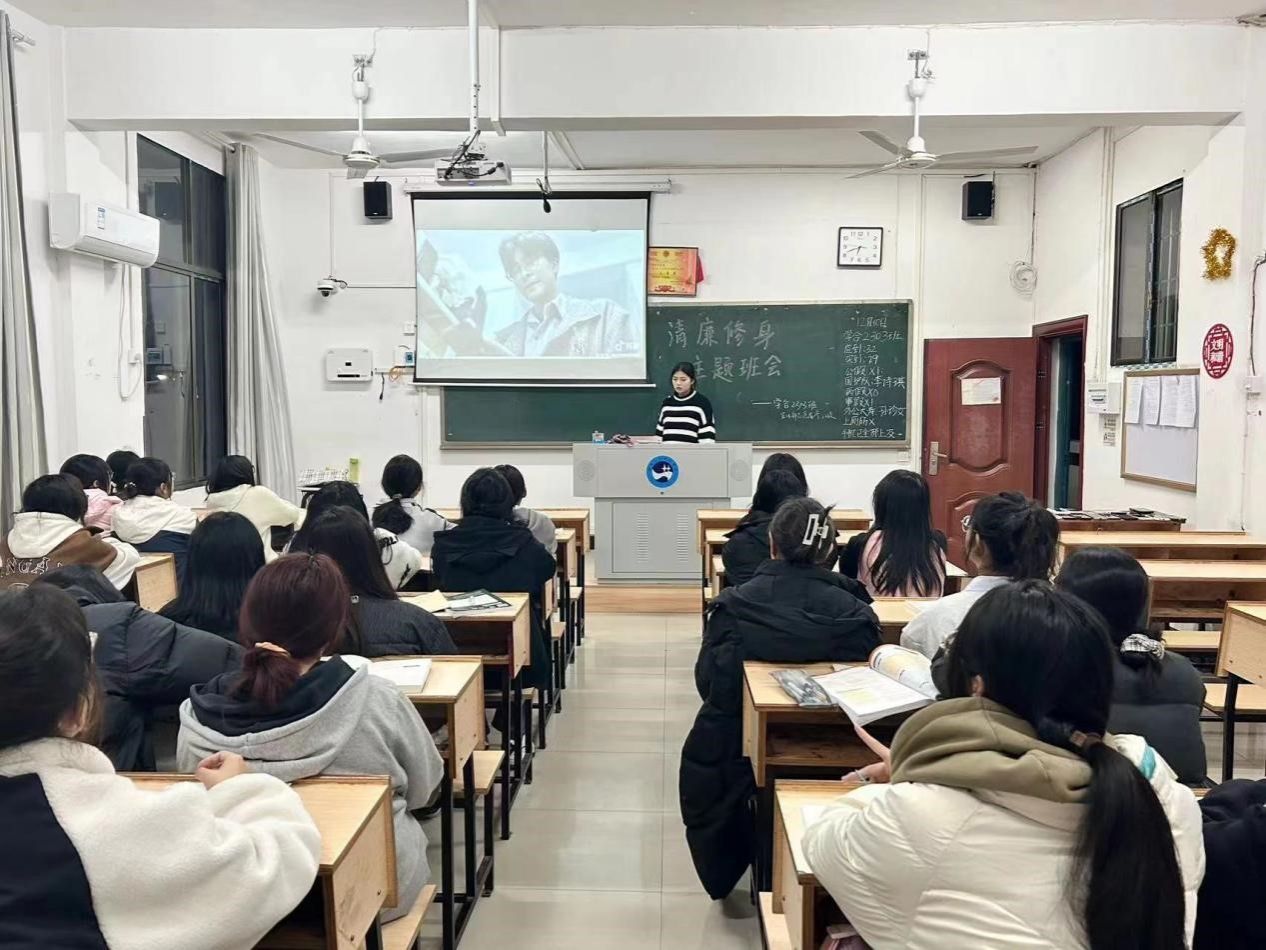 为提高同学们的道德意识,树立正确的价值观,教育学院于12月10日晚在甘澍楼开展了“清廉修身”主题班会活动,23级全体同学参与了本次活动。