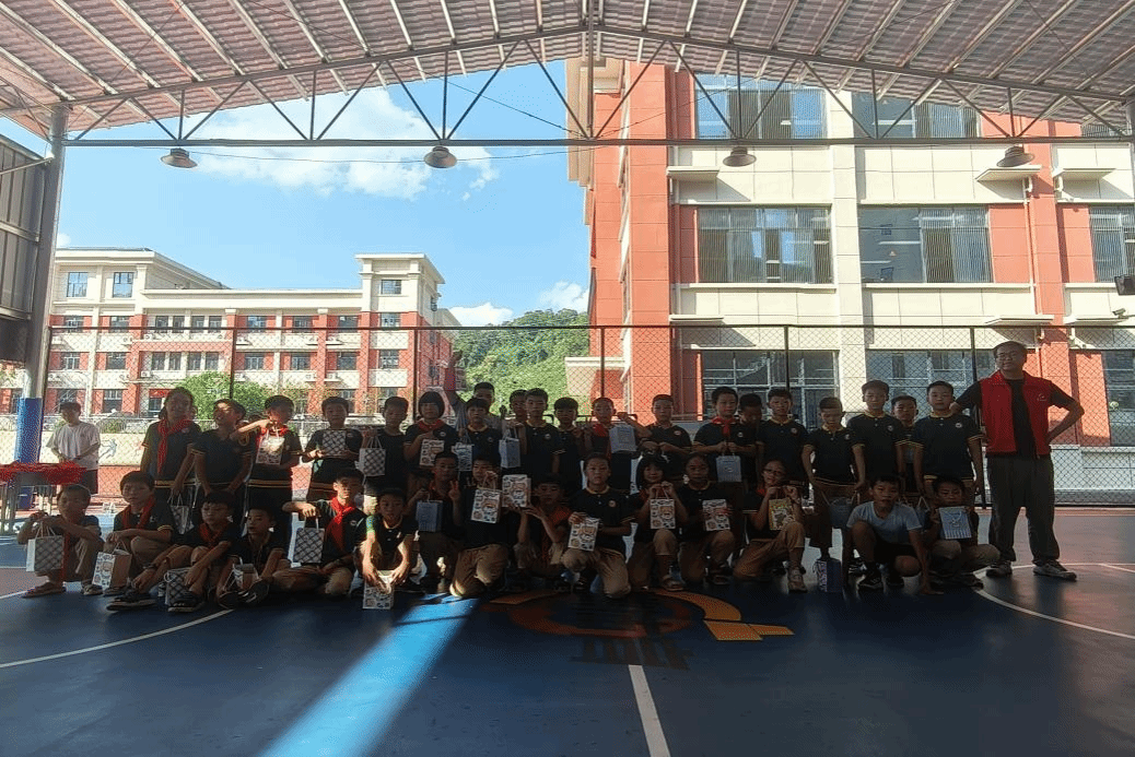 (图为孩子们收到礼物合影)