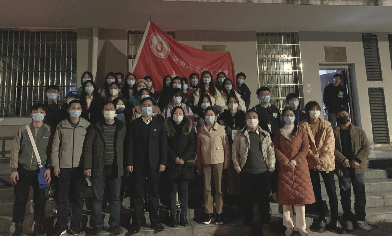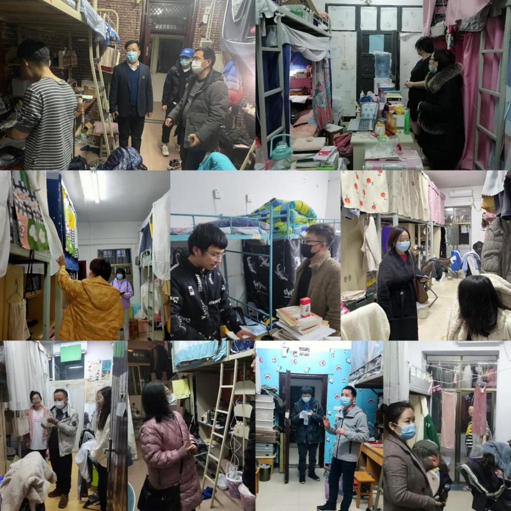 2022年3月1日晚,教育学院党总支书记邹坤和副书记田密带领全体辅导员与班主任集体下寝看望学生们,关心返校同学们的动态。