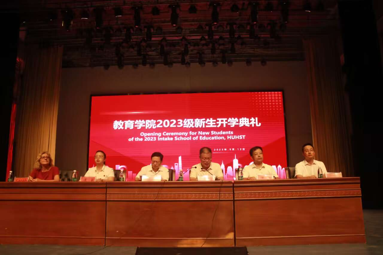 9月12日下午,教育学院2023级新生开学典礼暨入学教育在逸夫楼音乐厅举行。学校党委委员、副校长陈志国出席开学典礼并总结讲话。英国巴斯斯巴大学教育学院教授Sarah,国际合作与交流中心主任黄敏,教育学院党总支书记邹坤、院长刘超良、副院长刘黎明,学院教研室、实验室、教务办、学工办主任,辅导员、新生班主任以及教育学院2023级全体新生参加大会。院长刘超良主持第一阶段开学典礼,刘黎明主持第二阶段入学教育。