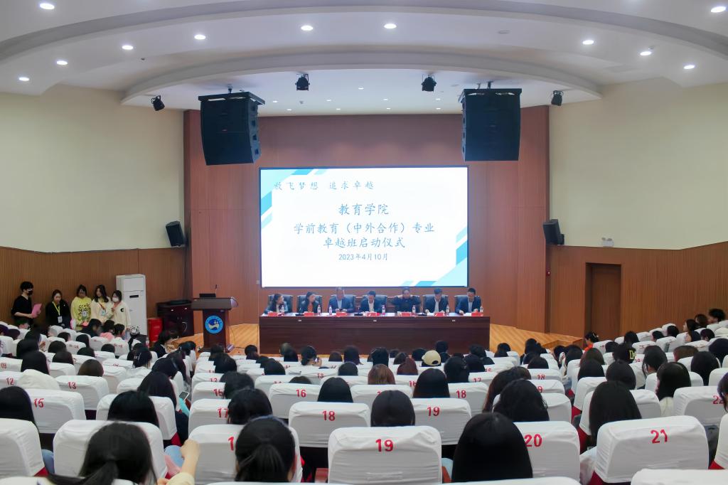 4月10日晚,教育学院开展“放飞梦想 追求卓越”的学前教育(中外合作)专业卓越班启动仪式。党委委员、副校长陈志国,国际交流中心主任黄敏,学院党总支书记邹坤、院长刘超良、副书记田密、副院长刘黎明,学院教研室、实验室、教务办、学工办、办公室主任,学前教育专业全体教师,学前教育(中外合作)2021级和2022级全体学生参加启动仪式。仪式由刘超良主持。