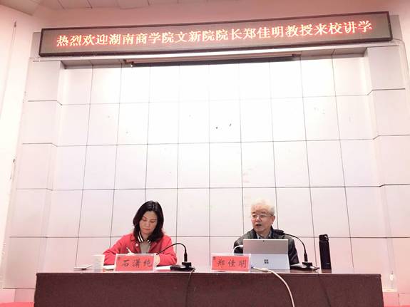3月21日下午,湖南商学院文新院院长、电视剧策划人、电视栏目主持人郑佳明教授做客beat365“人文科技大讲坛”,在匠成楼报告与400多名校内师生与校外湖湘文化爱好者分享《屈原与湖湘文化》的学术报告。报告会由石潇纯副校长主持。