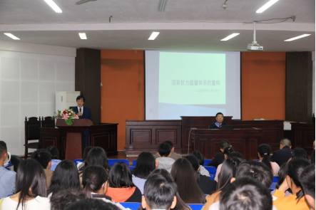 朱福惠教授以《国家权力监督体系的重构——以监察体制改革为中心》为题介绍了十八大以来党政关系的重新定位、国家机关之间相互关系的重新定位、以及法学研究、司法实务的重新定位,系统梳理了新中国成立以来国家权力监督模式的发展历程,重点分析了十八大以来权力监督体系的定位调整过程。在此基础上,分析了上述定位变化对国家权力监督体系构造上的重大影响。最后,简要比较了监察监督与其它监督方式的异同。报告还紧扣新时代中国特色社会主义思想背景,深入分析国家权力监督体系的发展历程、发展趋势。法学学科带头人游志能博士进行了总结,组织了法学学科座谈会,认真听取了朱福惠教授对于地方本科院校法学学科特色发展与凝练的指导意见。