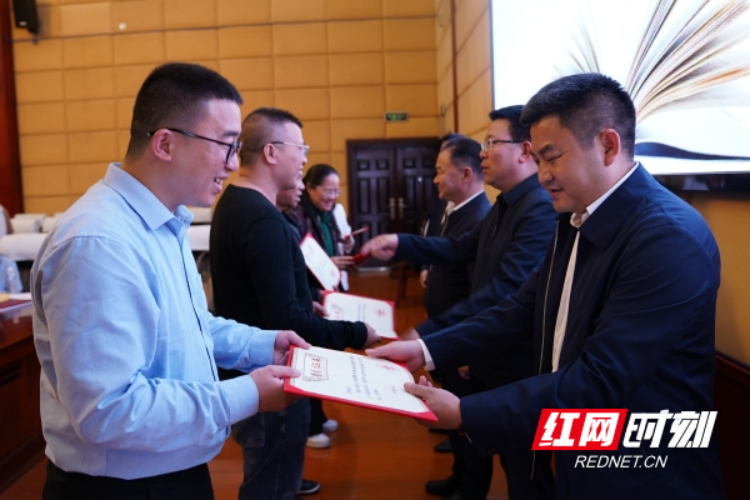 与会领导为获奖者颁奖。