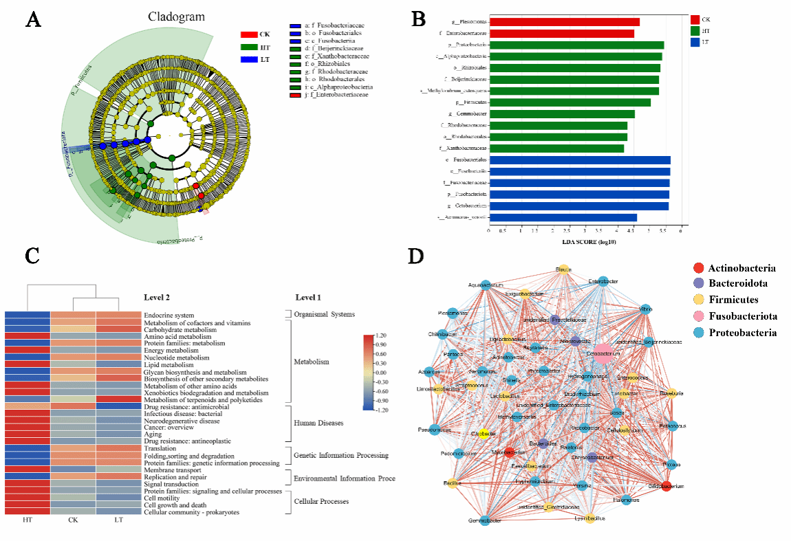 锑暴露对成年斑马鱼肠道微生物群的功能影响及微生物网络图