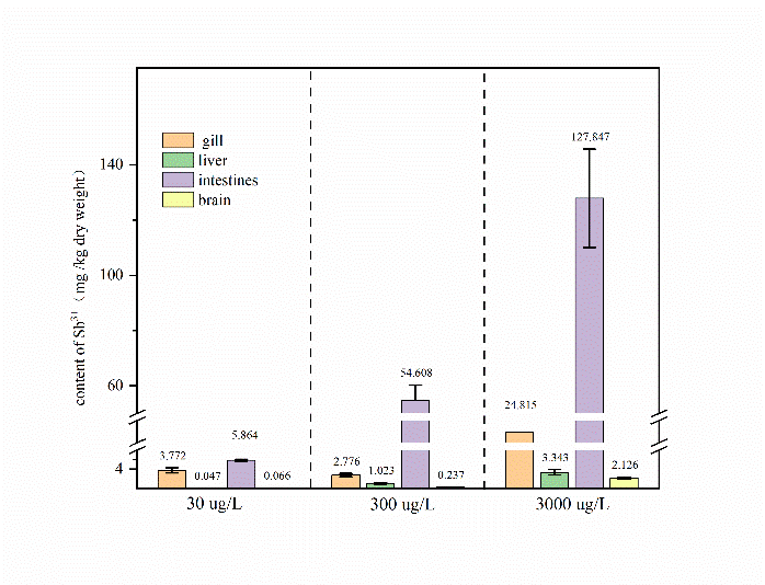斑马鱼各组织蓄积量及肠道组织损伤情况