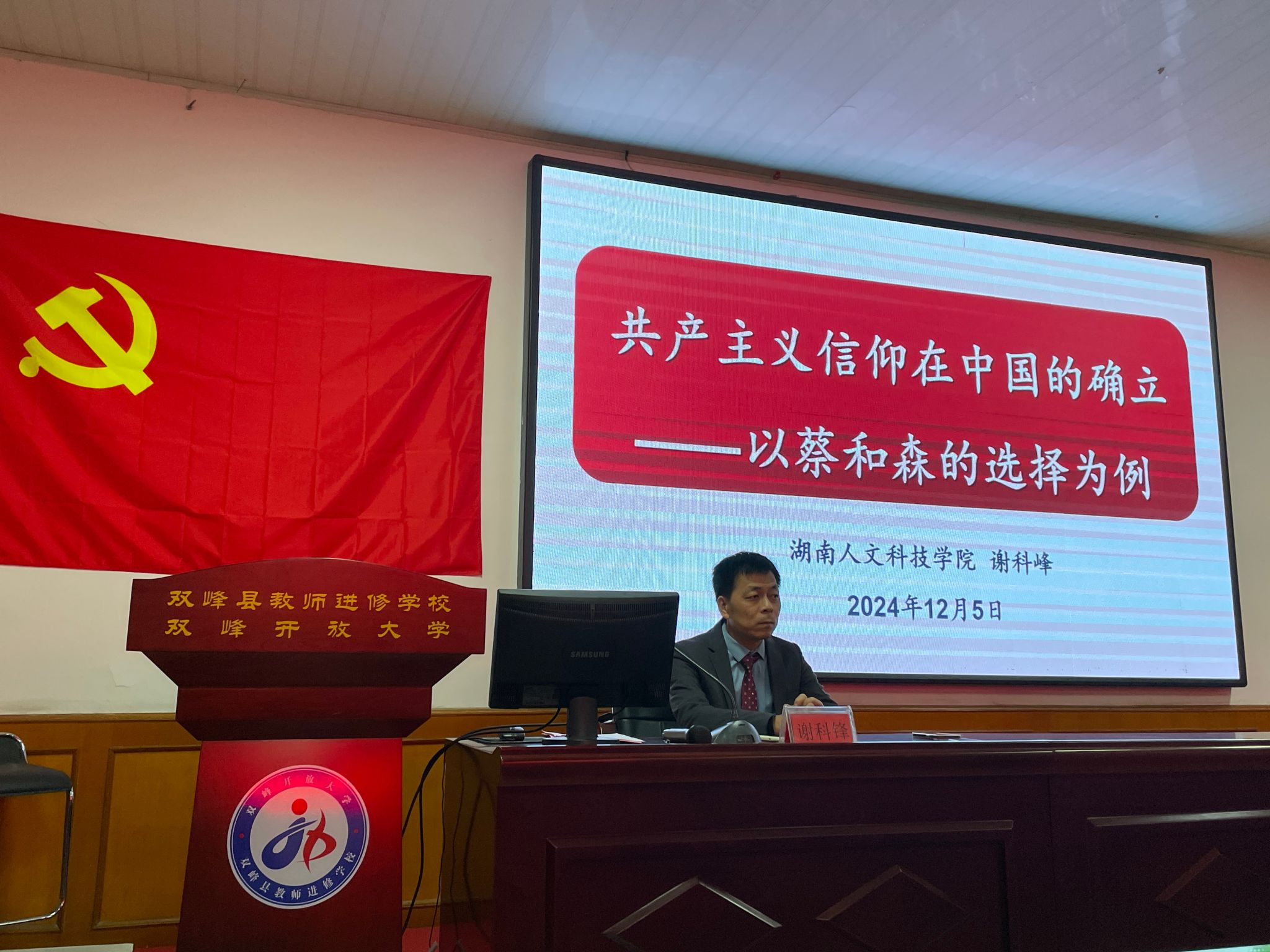 12月5日,双峰县举办2024年第四期教育系统共产党员轮训活动,马克思主义学院谢科峰博士受邀在双峰县教师进修学校为全县教育系统高中阶段党员教师进行授课。
