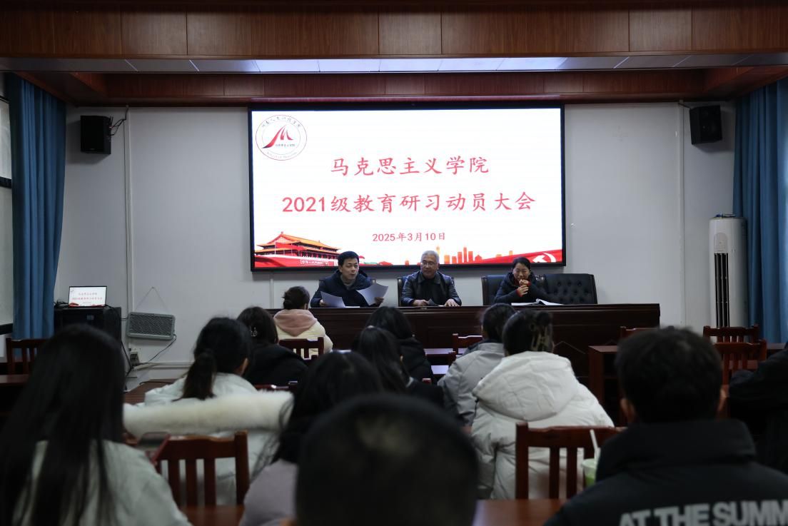 3月10日,马克思主义学院在若谷楼116室召开2021级教育研习动员大会,副院长成赛军、教研室主任谢科峰、部分研习指导老师及2021级思政三班学生参加。