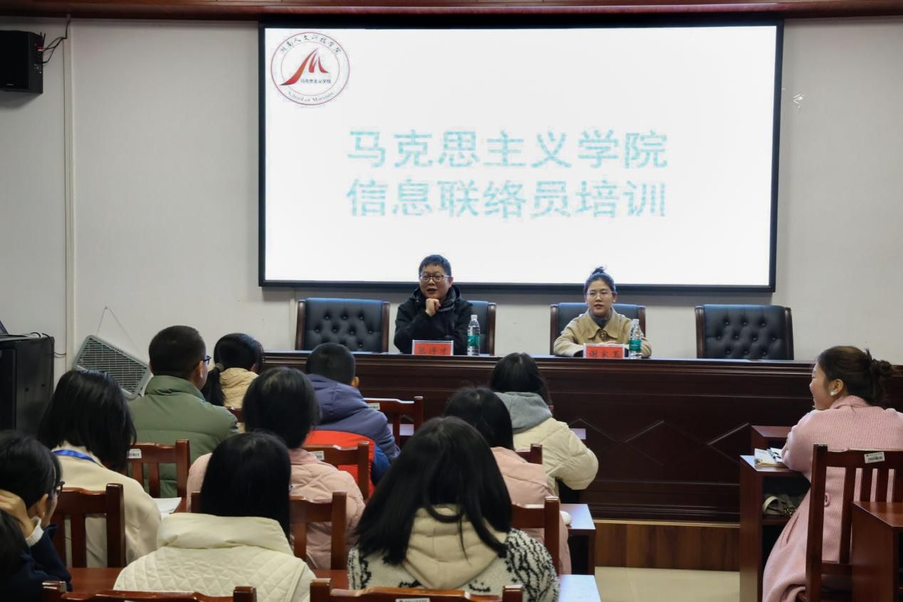 11月21日晚,马克思主义学院在116教室开展信息联络员培训,学工办主任、心理专干张得才与辅导员谢家玉共同主持此次培训,各班心理委员及寝室长参加培训。