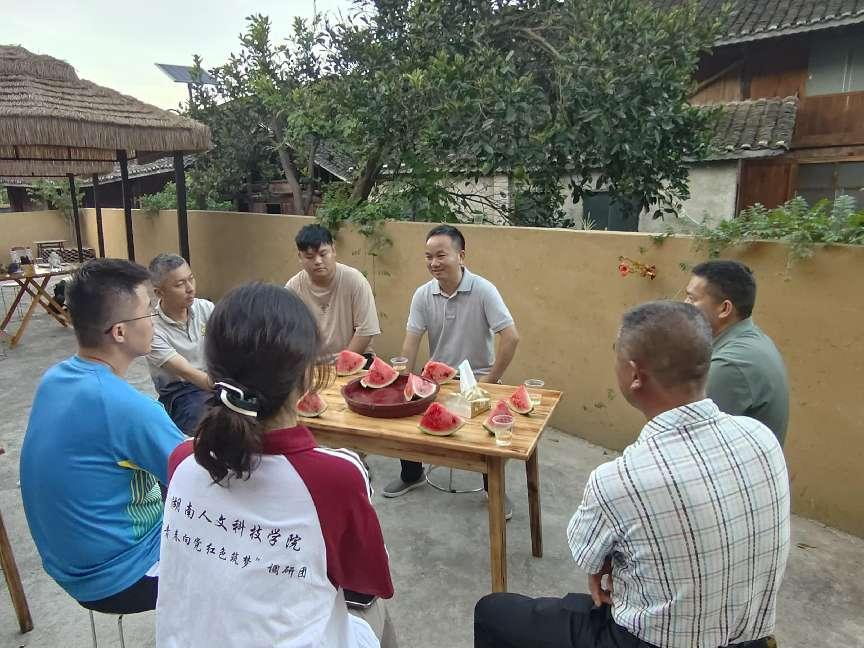 7月5日,绥宁县乐安铺乡党政领导班子一行前往大团村慰问我院“青春向党 红色筑梦”暑期社会实践调研团,了解调研团工作重难点,关心师生的生活环境,并送来农家的蔬菜、水果等物资。