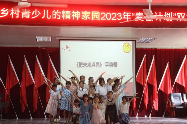 舞蹈串烧《少年—中国》在展现孩子们青春洋溢的少年稚气的同时弘扬中华传统文化,在舞蹈中尽显对未来的美好期望和对祖国热烈而深沉的喜爱。《歌唱祖国》通过唱歌的方式激发小朋友们的爱国意识与家国情怀,表达对祖国的美好祝愿。《谨防溺水,安全一夏》的手势舞使学生学习到有关溺水安全的知识,提高了他们的安全意识……随着麦芒计划主题曲《诗与远方》的唱响,此次2023年麦芒计划双江乡成果汇报走向尾声。