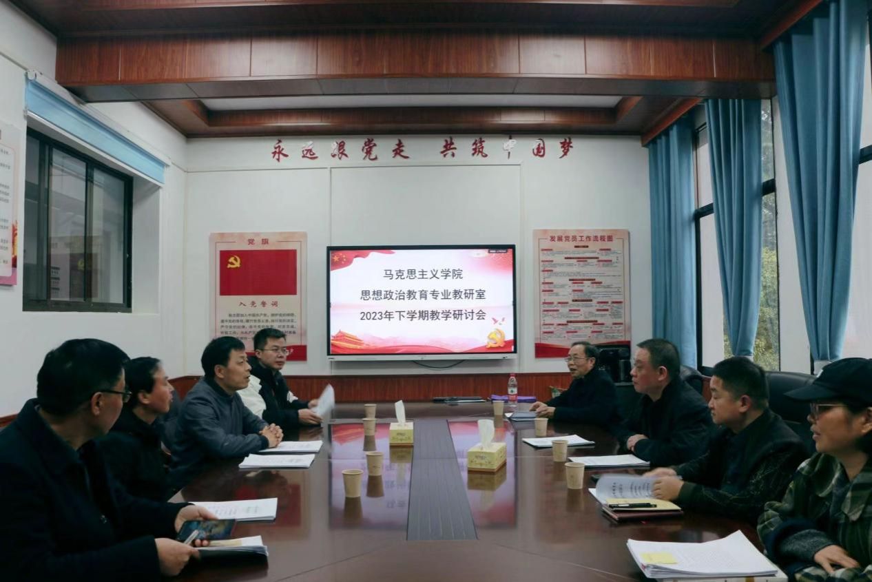 活动分别从湖南省思想政治教育专业2023版新版人才培养方案的修订、2023版新版教学大纲、本学期学情、思政专业教学技能研讨会四个方面展开讨论。首先,谢科峰博士在我院思政教育专业2023版新版人才培养方案研讨会的基础上,充分结合教学实践,进一步指明了新版人才培养方案的修订方向。然后,为明确今后的教学方向,各思政专业教师分别就2023版新版教学大纲展开讨论,并对本学期学情进行详细分析。杨国辉教授指出,2023版新版教学大纲是加强我院教学计划性的重要手段,衡量我院教学质量的重要标准,必须科学严谨,同时也要做到理论与实际相结合。谢科峰博士表示,学情分析是“以学生为中心”、“以学习为导向”教学理念的具体落实,是提高我院教学科研活动水平的基础。最后,院长张卫明教授就思政专业教师教育教学技能提升进行总结,张卫明强调,我院思想政治教育教研室教学研讨活动,紧围绕人才培养展开是提升教师教育教学技能的一个重要举措,应该一以贯之,进一步推动我院在教育教学方面取得更高成就。