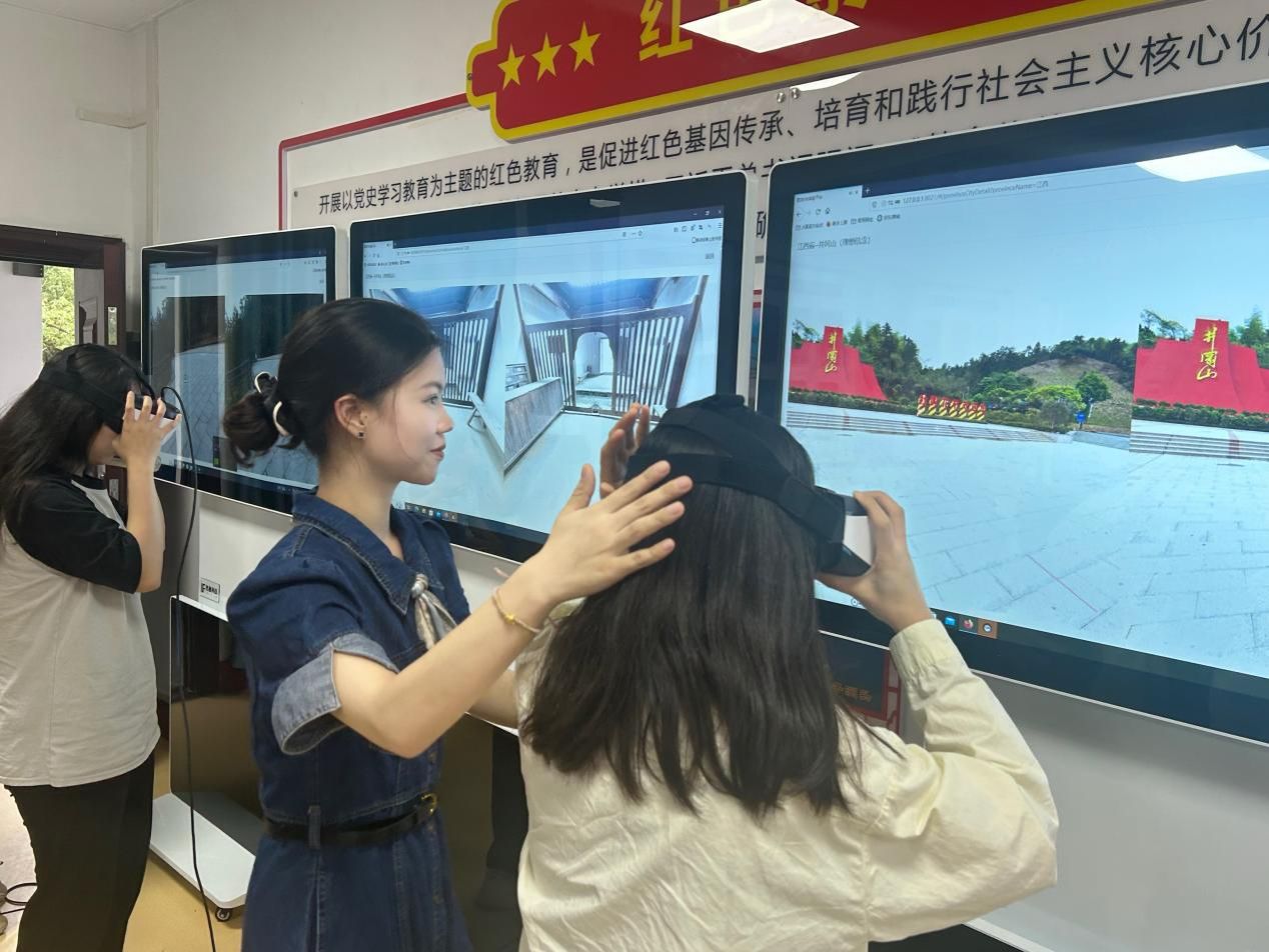 课上,李婉溶首先以井冈山精神产生的背景引出深刻话题,并从多方面阐述井冈山精神“胸怀理想、坚定信念”“实事求是、勇闯新路”等基本内涵,带领同学们切身感受革命时期中国共产党人在井冈山斗争中的艰难过程。随后,李婉溶借助VR实训设备引导同学生们跨越时空,线上参观井冈山革命根据地、井冈山碑林、毛泽东旧居等红色教育基地。最后,李婉溶在总结每小组同学代表的发言中,向大家教授了井冈山精神的现实意义。她表示井冈山精神作为中国共产党在革命斗争的艰苦岁月中形成的伟大精神和马克思主义中国化的理论结晶,走出了符合中国国情的革命道路,这对于当代大学生坚定理想信念、弘扬中国精神具有重要的指导意义。同时,希望同学们脚踏实地,志存高远,积极弘扬与传承井冈山精神,自觉做共产主义远大理想的坚定信仰者和忠实实践者。