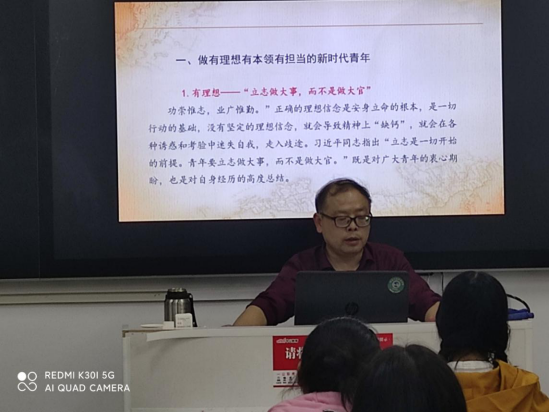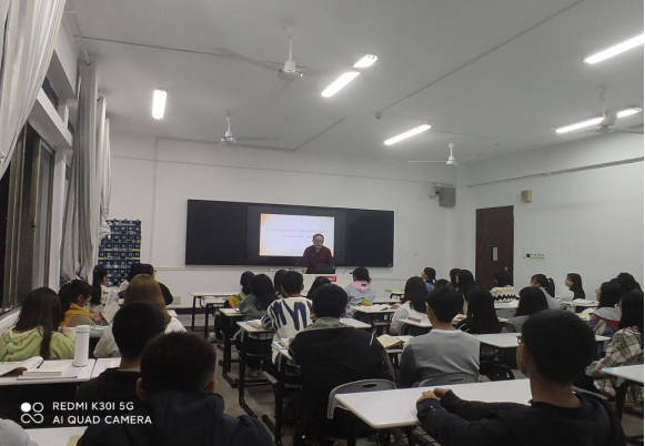 2020年11月3日晚,我院陈灿芬老师在致远楼603教室,为2020级思想政治教育专业1班学生作了《新时代大学生社会主义核心价值培育和践行》的学术讲座,受到了学生的热烈欢迎。