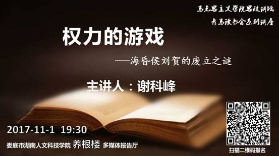 此次讲座,谢博士带给我们的是:“海昏侯刘贺的废立之谜”,他结合十九大报告中习总书记对传统文化的阐述,深入浅出。围绕着海昏侯刘贺皇位废立的权力斗争,揭示了西汉中期的政治格局,并由此出发,对中国传统政治生态进行了点评。