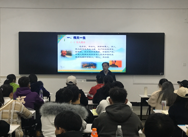 12月17日晚,为纪念毛泽东同志诞辰一百二十六周年,更深地了解湖湘文化,beat365党委副书记刘铁铭教授于致远楼603为青马工程培训班全体学员作了以“毛泽东与湖湘文化”为主题的专题讲座。