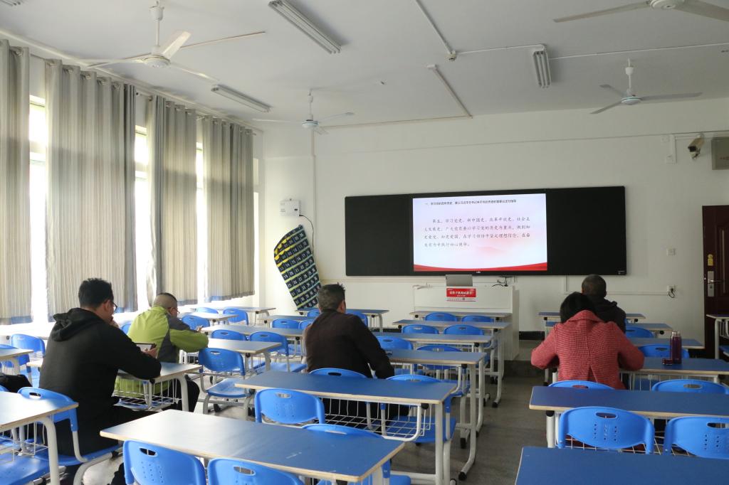 为贯彻落实习近平总书记在学校思想政治理论课教师座谈会上的重要讲话精神,提高思政课教师的马克思主义理论素养。4月9日下午14:30,我院组织思政课教师在致远楼603教室集中观看“周末理论大课堂”第五十三讲,副院长杨国辉、伍揆祁教授、卿孟军博士、刘风雪博士、周红江博士、郑凤娇博士、孙淇庭老师参与本次活动。