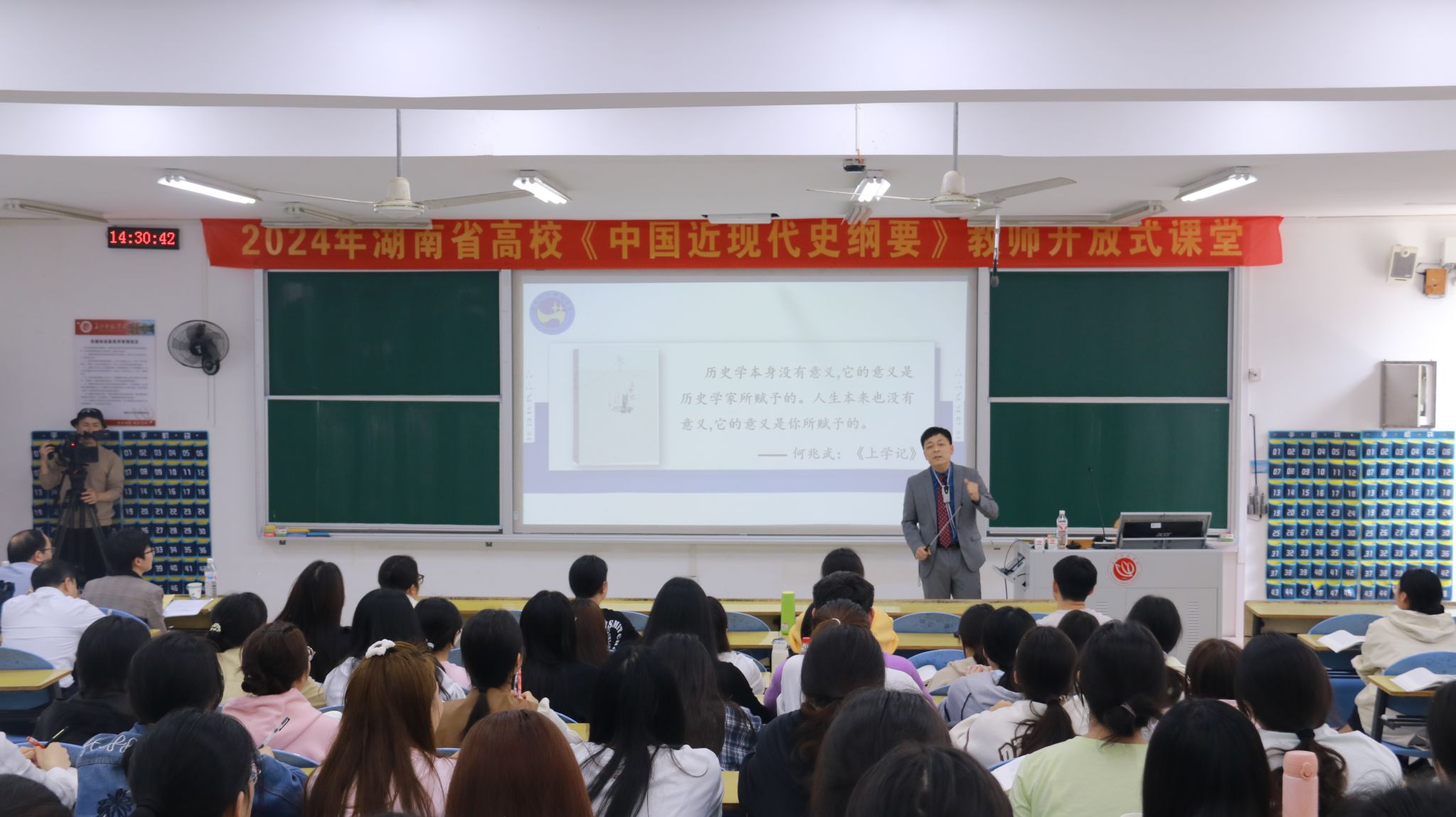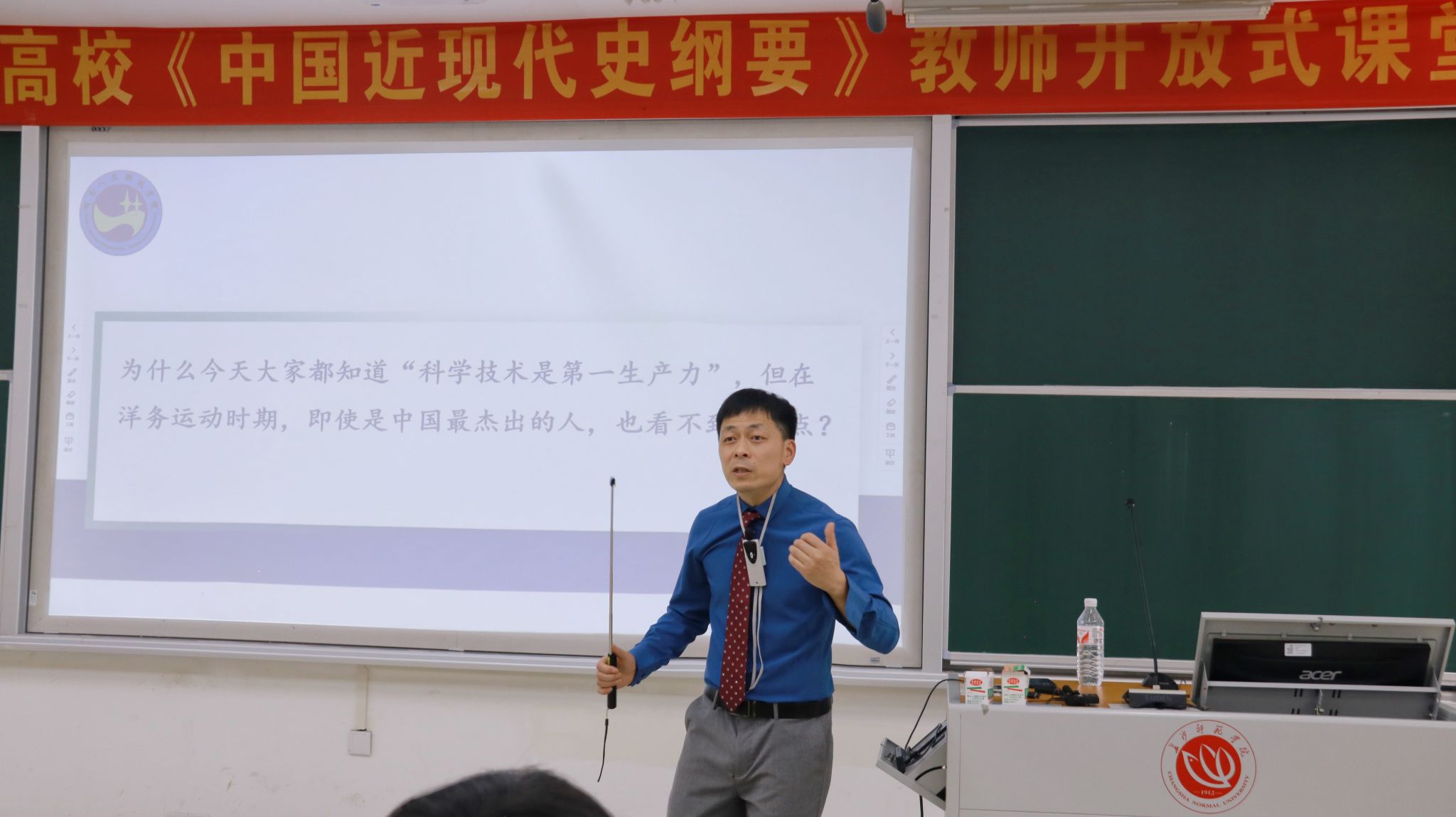 为进一步加强湖南省思想政治理论课建设,4月19日下午,我院谢科峰博士赴长沙师范学院开展“洋务运动再认识”主题讲座。本次讲座是由湖南省委教育工委组织,长沙师范学院承办的《中国近代史纲要》开放式课堂。开放式课堂是一种创新的教学理念和方法,旨在为学生提供一个更加自由、多元化的学习环境。来自湖南师范大学,湘潭大学,湖南农业大学等省内30多所高校教师及学生现场观摩。