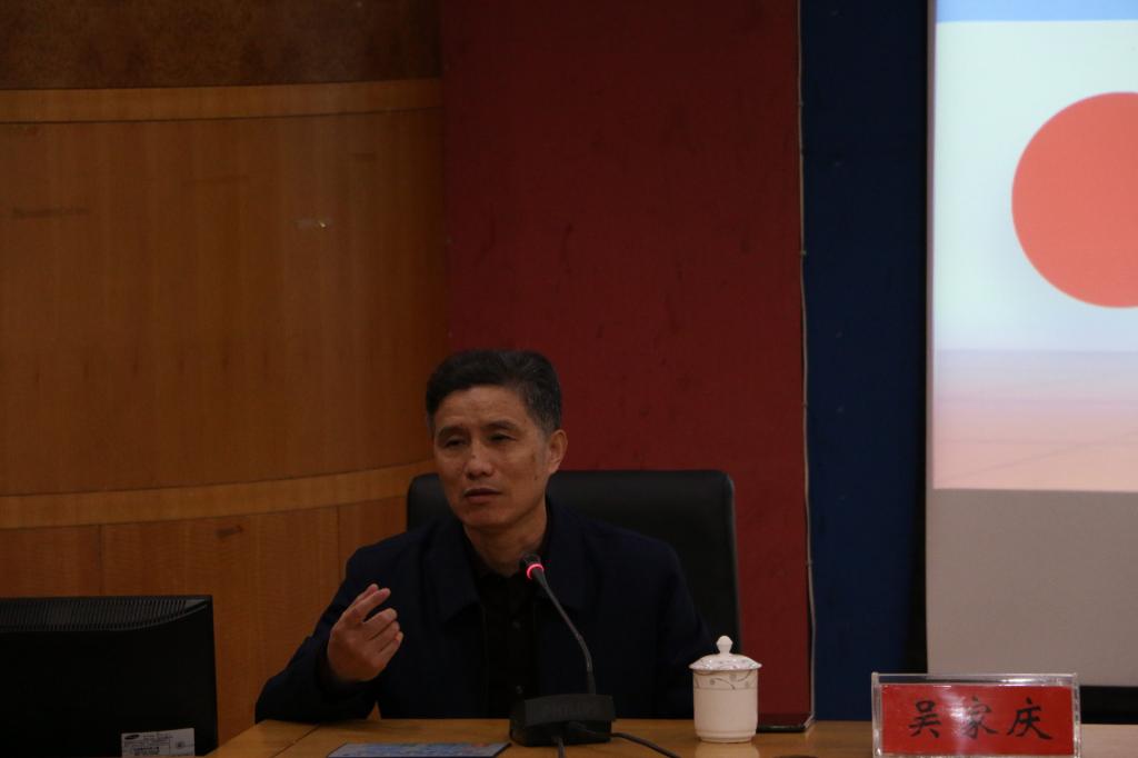 11月20日晚,为提高我院学生理论水平,广西大学马克思主义学院特聘教授、博士生导师、国家“万人计划”哲学社会科学领军人才、中央马克思主义理论研究和建设工程首席专家、国家社会科学基金学科评审组专家、国家社科基金重大项目“以全面建成小康社会为目标提高党领导发展能力和水平研究”首席专家吴家庆应邀于养根楼多媒体报告厅为我院作了以“习近平新时代中国特色社会主义思想体系解读”为主题的讲座。此次讲座由我院院长张卫明主持,党总支书记游训龙、副院长杨国辉、副书记成伟、卿孟军博士、何娟博士、李嘉瑞、张得才等老师出席了本次讲座,我院17级、18级学生及青马工程班全体学员参加。