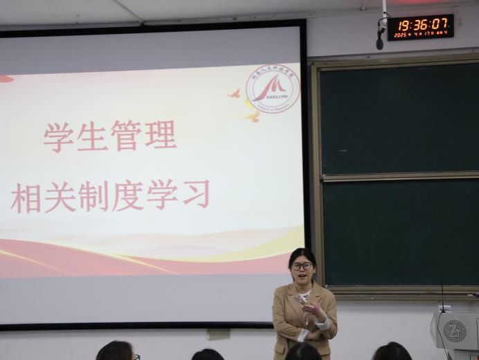 为深化学生管理工作,切实增强学生纪律意识、规范学生行为。4月17日晚,马克思主义学院于致远楼219顺利召开学生管理相关制度学习会议。辅导员谢家玉主持,全体学生干部参与。