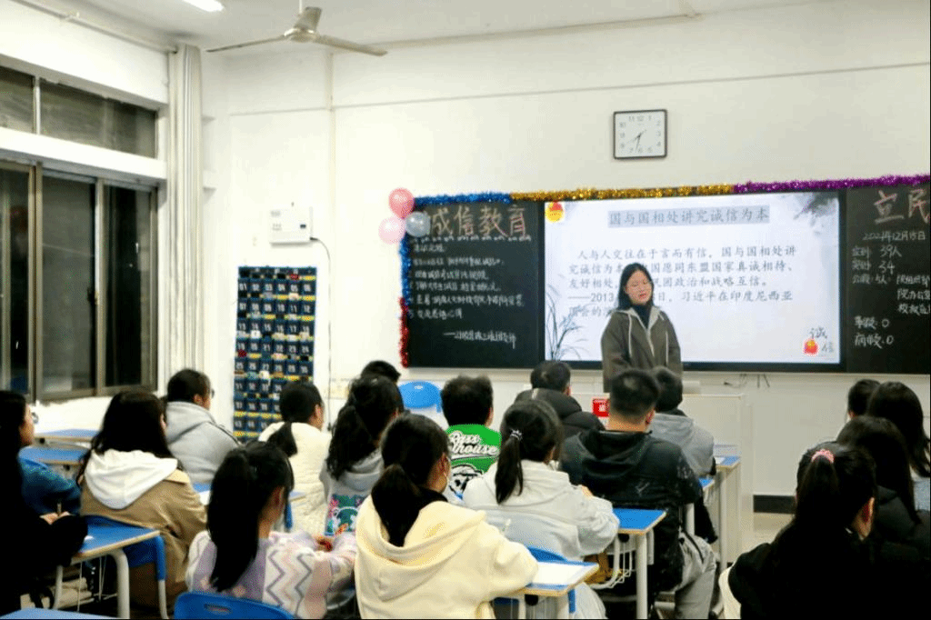 12月15日晚,我院2021级全体学生于致远楼六楼分班开展“诚信教育”主题团课。2019级、2020级学生于线上同步进行。本次主题团课以诚信教育为切入点,旨在教育引导学生自觉践行社会主义核心价值观,遵守考场纪律,维护公平公正的考试环境,维护考试尊严,增强诚信意识。