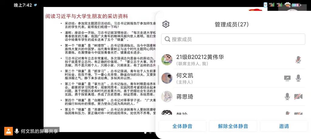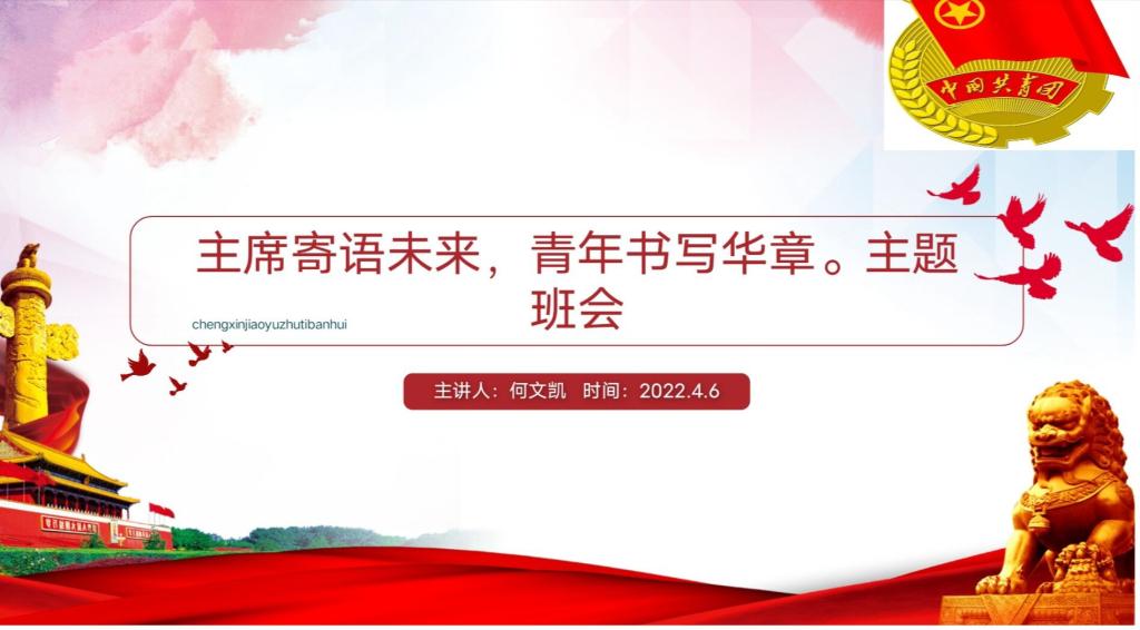 为深入理解习近平总书记对广大青年的殷殷嘱托,引领新时代广大青年继续弘扬传统、振奋精神,始终保持艰苦奋斗的前进姿态,4月6日晚,我院各级学生于线上开展“主席寄语未来,青年书写华章”主题团课。此次团课由各班宣传委员主持。