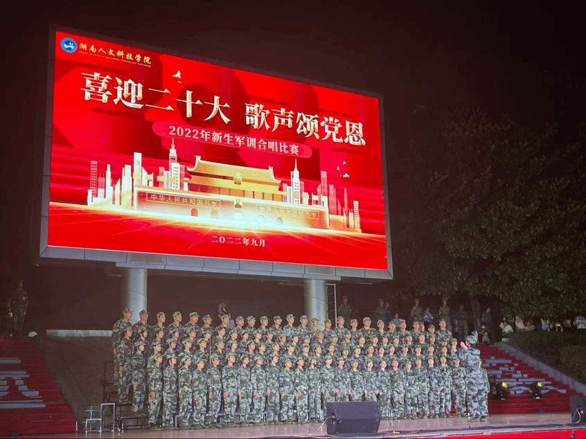 9月26日晚,我院2022级新生在海园广场参加“喜迎二十大,歌声颂党恩”军训合唱比赛。