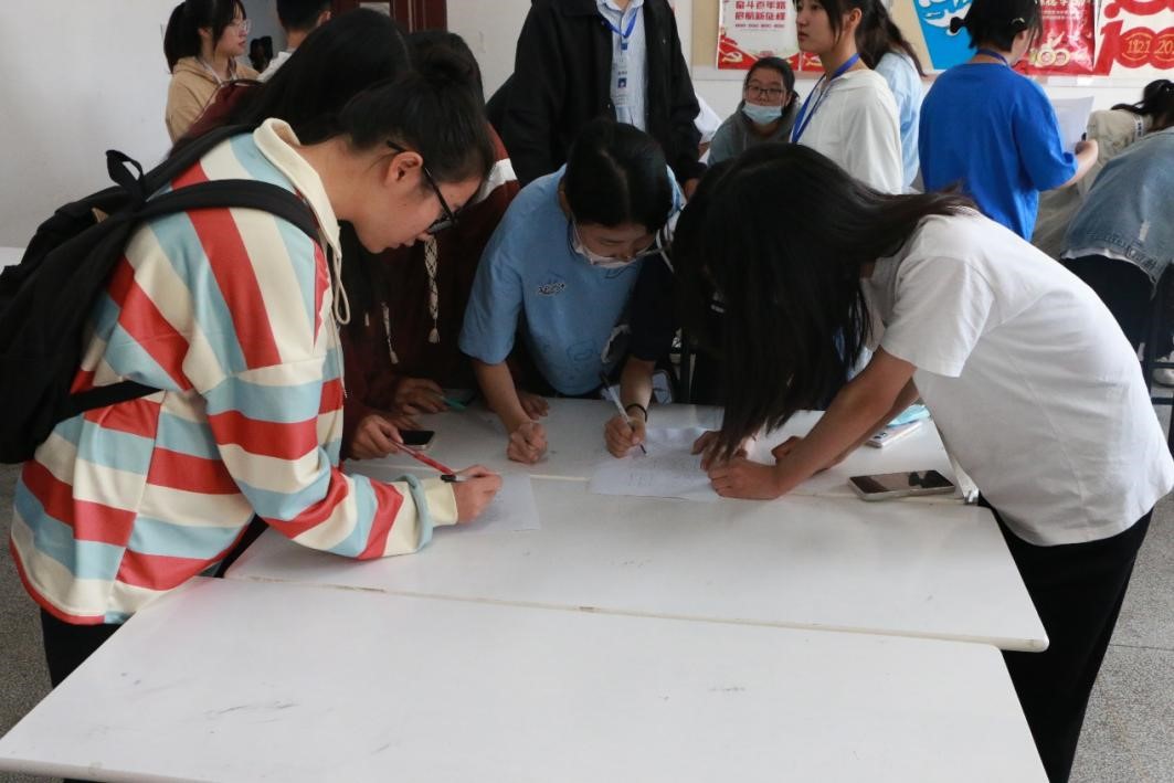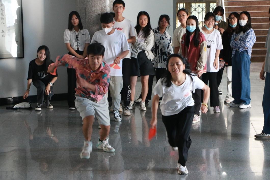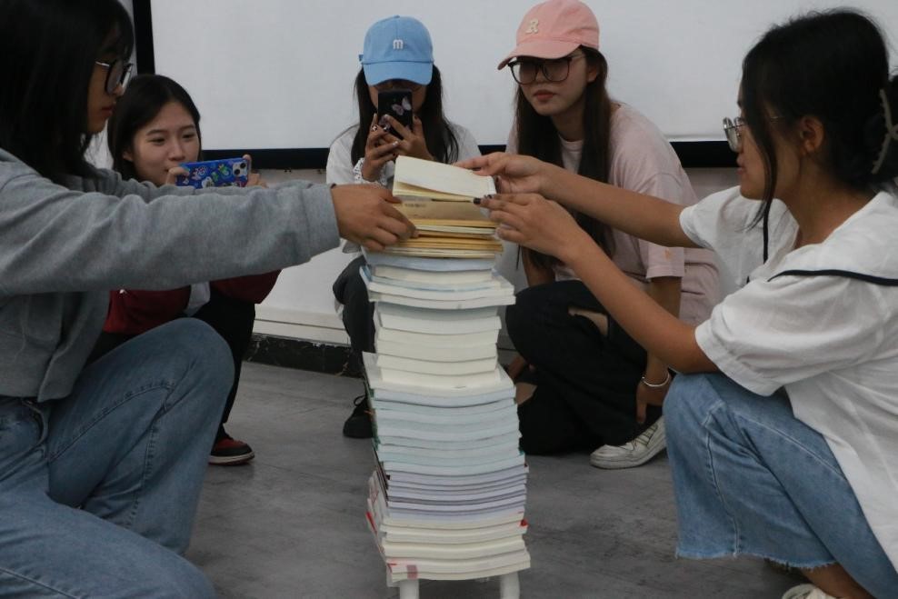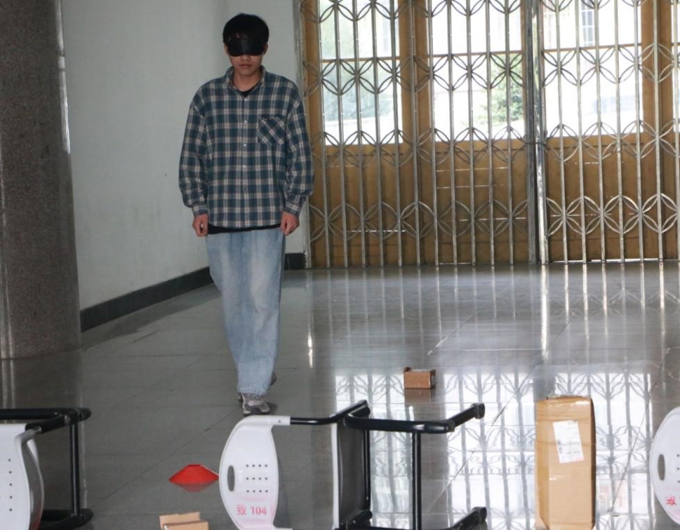 决赛阶段进行了仙人指路与纸张称重两个活动。仙人指路以队友间的互相信任为根本,同学们蒙着眼睛,仅凭队友的指挥越过障碍,现场的参赛队员们相互配合,团结协作,共同为赢得胜利努力。纸张称重,是一个富含物理力学知识的活动项目,让同学们利用自身知识能力制作四个承重纸团,在上面放置书籍。此项目强化了人文学子全方面发展能力,促进培养适应新时代发展的全方面人才。