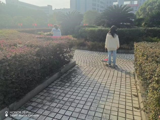 同学们在生活委员的带领下进行本次劳育实践活动。本次活动以寝室为单位进行分组,各组在寝室长的带领下分区域打扫。活动过程中,同学们分工明确,尽职尽责,干劲十足,按照卫生要求,清扫地面上的枯枝落叶与白色垃圾,经过各组人员之间的团结协作与不懈努力,区域卫生情况得到很大的改善。