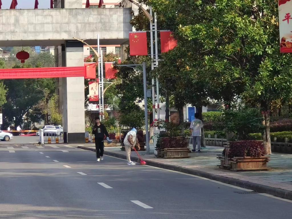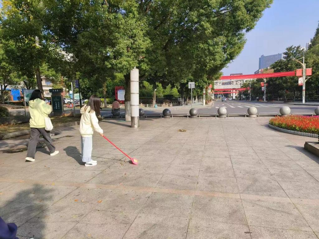 同学们积极主动参与,认真细致打扫。枯枝落叶,塑料纸屑,都被同学们一扫而净。除此常规任务外,对于灌木丛中的果皮纸屑,同学们也用长柄夹夹出,对每个角落都进行了细致的清理。在此过程中,同学们同样发扬了团结协作的优良品格,分工明确,互相帮助,以辛勤的汗水换来了环境的焕然一新。